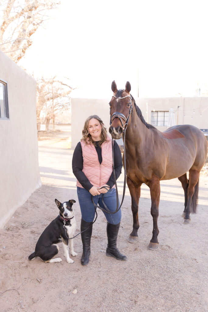 Kaitlin moved to Albuquerque in 2013 after graduating from Colorado State University with a degree in Ag Business.  She has ridden for over 20+ years and owned horses for over 15 years.  She currently rides dressage and plays on the trails but grew up riding hunter/jumper as well as a Pony Clubber. She loves to give back to the community by helping the CHAMP board and serving on the Corrales Equestrian Advisory Commission.